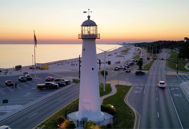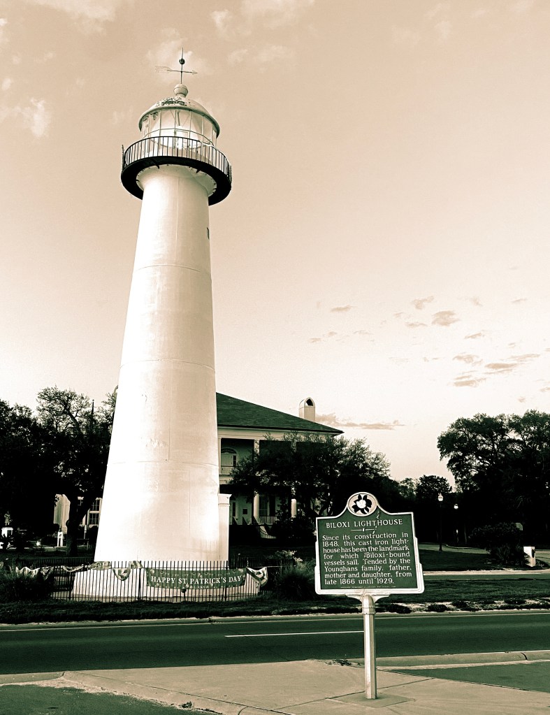 It’s a hot summer afternoon in Biloxi. The sky is a deep blue. A warm breeze drifts over the water. Children are playing nearby. Footsteps from the sandy beach, a lone man gazes up at the white lighthouse that sits prominently between the east and westbound lanes of highway 90.