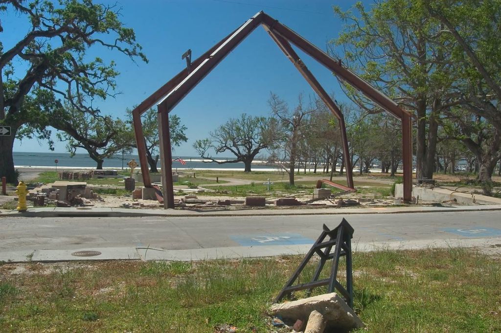 A mile to the east of the famous lighthouse you will find the Katrina memorial, dedicated not only to those lost during the storm but also to those who spent hours and days in the aftermath digging out and helping others do the same. Close to the memorial are two large wooden fish, carved out of trees that did not withstand Katrinas wrath. A half mile down the road, close to the beach, sits a somewhat pyramid shaped red frame. This is all that remains of the Church of the Redeemer. Katrina leveled the church. Although most of the debris was eventually cleared from the site, this frame was left intact. An historical marker now sits nearby, reminding visitors of what once was.